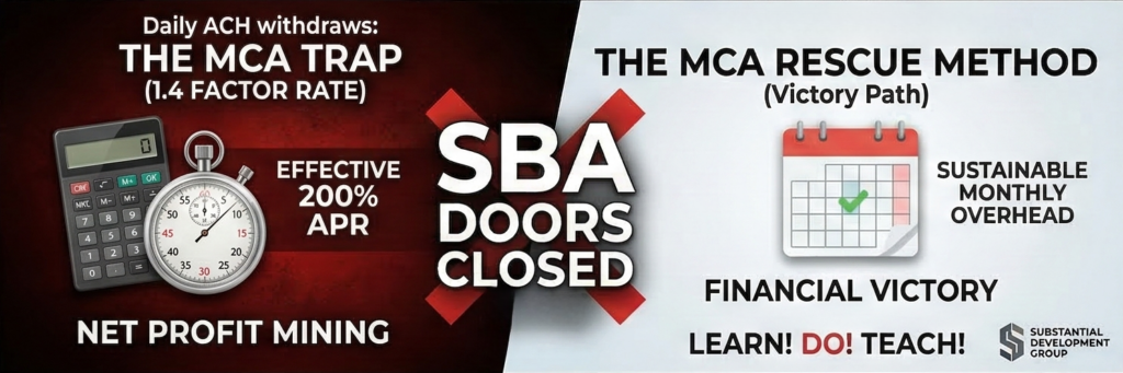 Historically, many owners planned to “bridge” their way through high-cost funding until they could qualify for a traditional SBA 7(a) loan. That strategy is officially dead. As of June 1, 2025, SBA rules prohibit using loan proceeds to refinance MCA or factoring arrangements. To be clear: while factoring is the sale of an asset and not “debt” in the traditional sense, the SBA now classifies it as an ineligible obligation for refinancing. If you are utilizing these tools today, you cannot look to the SBA to pay them off later.